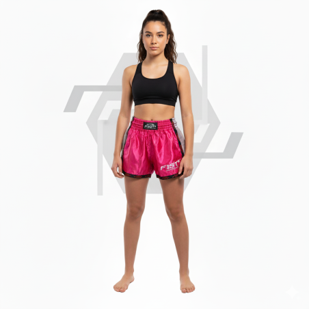 El pantalón corto Rosa FIST "FASHION"  representa el nuevo short para muay thai, con un diseño impactante combinando el color Negro y Plata.